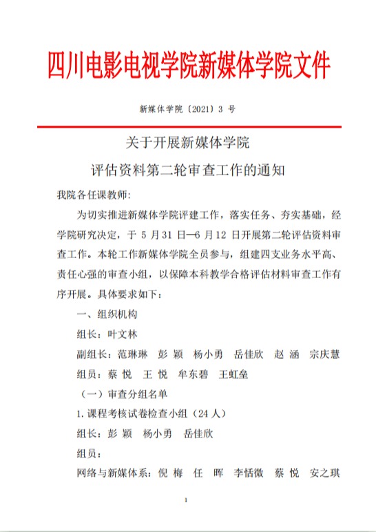关于开展新媒体学院评估资料第二轮审查工作的通知我院各任课教师:为切实推进新媒体学院评建工作,落实任务、夯实基础,经学院研究决定,于 5 月 31 日—6 月 12 日开展第二轮评估资料审查工作。本轮工作新媒体学院全员参与,组建四支业务水平高、责任心强的审查小组,以保障本科教学合格评估材料审查工作有序开展。具体...