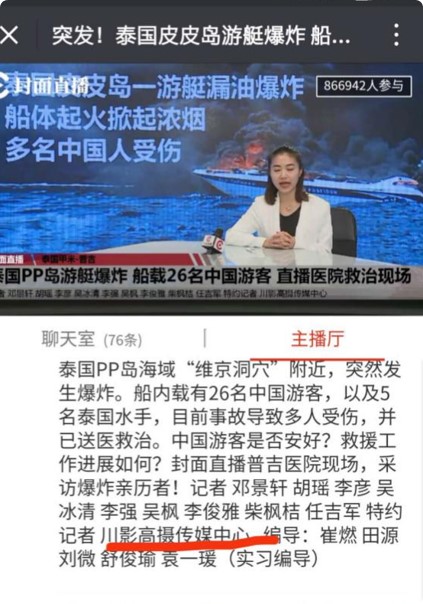 我院学生就泰国皮皮岛快艇爆炸事件面向全国独家直播,点击率超过2000