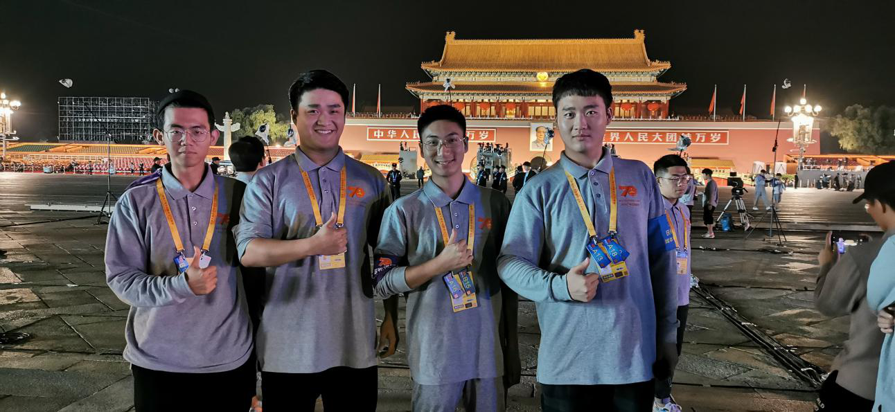 2016级四名同学在央视参加建国70周年庆典活动直播工作,是转播摄像系统中仅有的四名在校大学