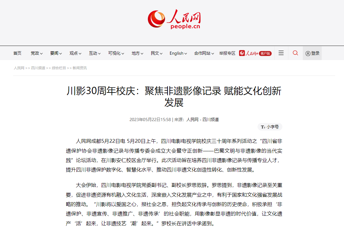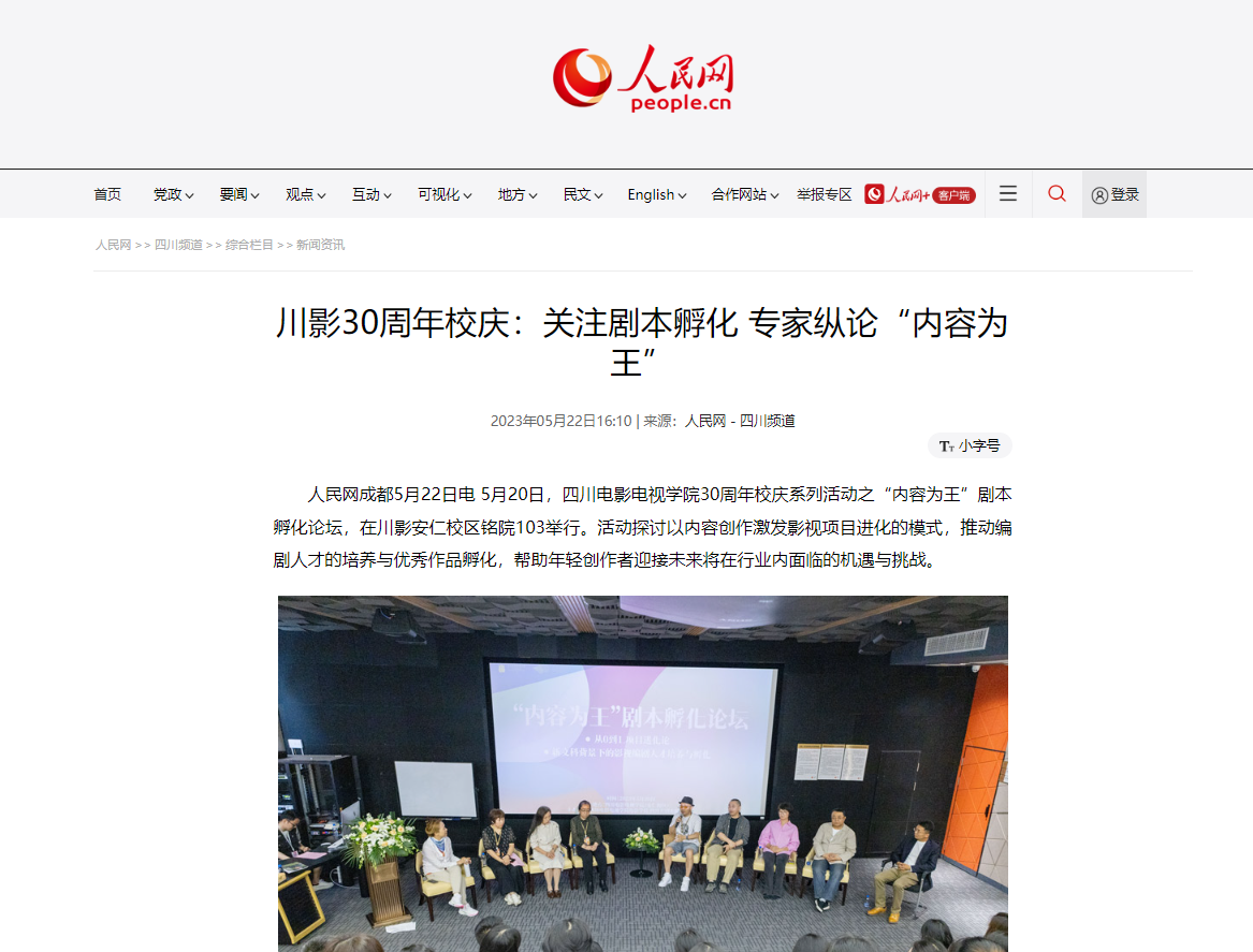 近日,由中国广播电视社会组织联合会、人民网主办的成渝影视发展大会在四川省成都市大邑县beat365平台官方网站安仁校区(四川影视文创城)举行。