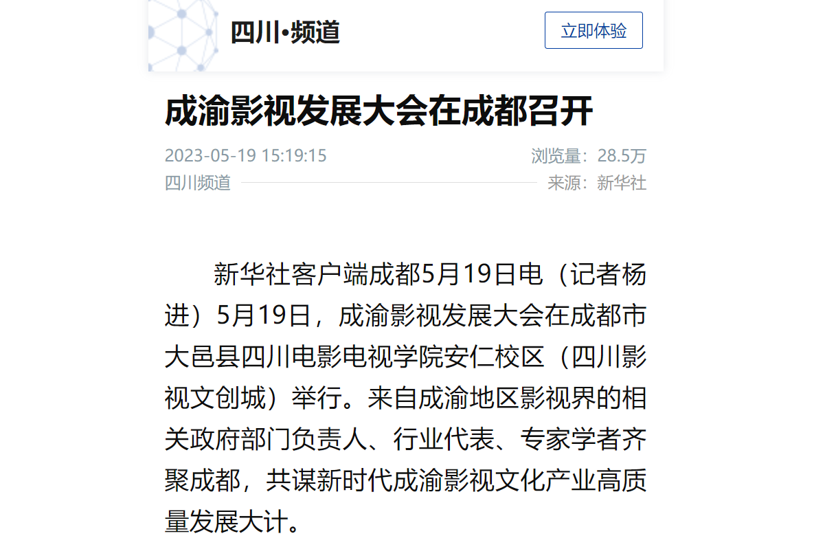 【新华社】成渝影视发展大会在成都召开