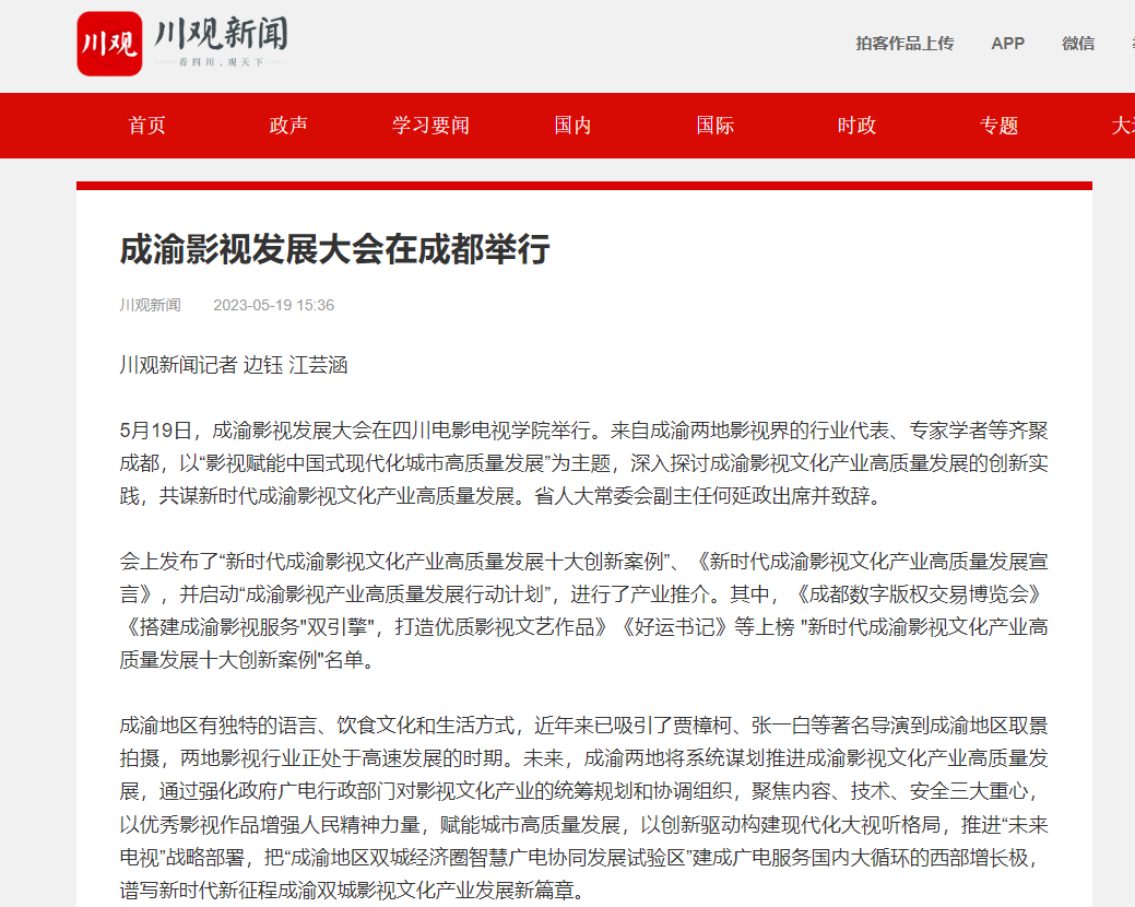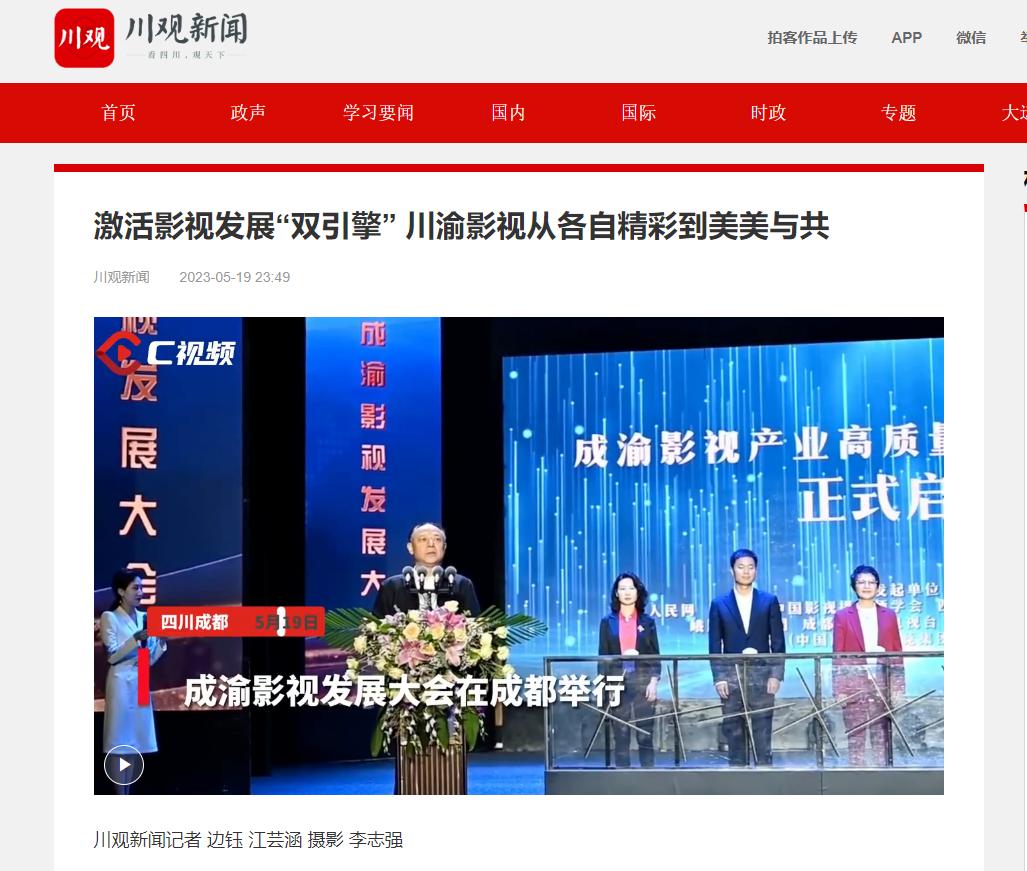 5月19日,以“影视赋能中国式现代化城市高质量发展”为主题的成渝影视发展大会在成都举行,来自成渝地区影视界的相关政府部门负责人、行业代表、专家学者齐聚成都,共谋新时代成渝影视文化产业高质量发展。