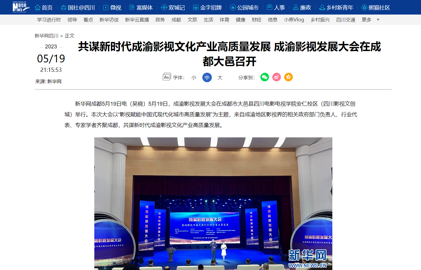 5月19日,成渝影视发展大会在成都市大邑县beat365平台官方网站安仁校区(四川影视文创城)举行。本次大会以“影视赋能中国式现代化城市高质量发展”为主题,来自成渝地区影视界的相关政府部门负责人、行业代表、专家学者齐聚成都,共谋新时代成渝影视文化产业高质量发展。