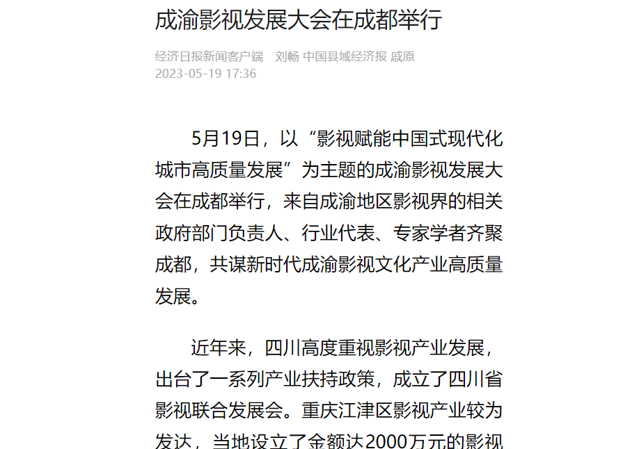 巴蜀文化一脉相承,有着高度融合的文化基因。成渝地区双城经济圈建设为川渝影视产业发展提供了广阔前景,也为加强彼此交流合作提供了更多机遇。