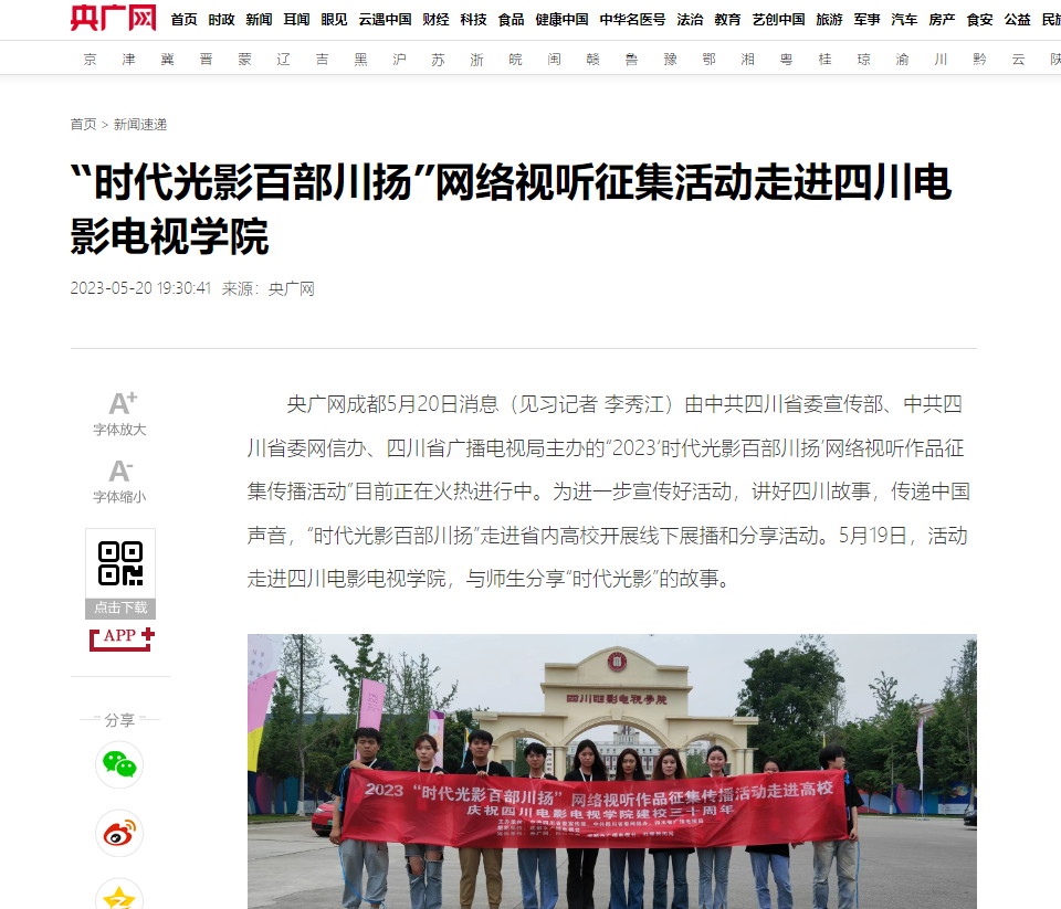 由中共四川省委宣传部、中共四川省委网信办、四川省广播电视局主办的“2023‘时代光影百部川扬’网络视听作品征集传播活动”目前正在火热进行中。